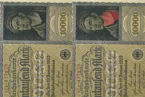 The German people found that the purchasing power of a 5000 mark note had decreased so much that it would barely purchase a loaf of bread, . . . in response “the government issued a new 10,000 mark note.” The engraver of this new banknote cleverly etched the face of a vampire with her mouth at the throat of a working man, insinuating that the issuance of such inflated currency was literally “draining the life blood of the worker.”